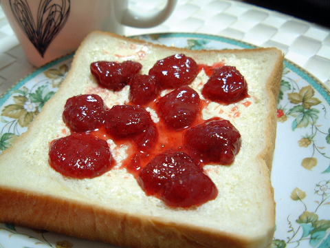 この日は小粒ないちごが1パック150円で売っていたので即決で購入しました。何個かはフレッシュなままいただき、残りはジャムにしました。ちっちゃくて酸っぱくてもジャムにしてしまえばわかりませんよね・・!!香りはとってもさわやかで、つぶさないように丸ごと煮たので食べごたえがあり、つぶつぶ感もたまりません♪買ってきた高級ジャムにも全然負けてませんよ!!